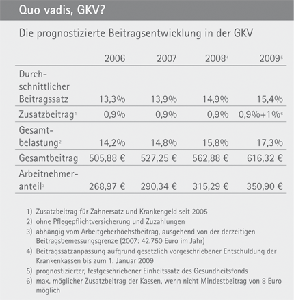 Mit Einführung des Gesundheitsfonds zum 1. Januar 2009 werden die Einnahmen und Ausgaben der gesetzlichen Krankenkassen vom Gesetzgeber neu geregelt - leider ohne dabei das System nachhaltiger für die Zukunft zu gestalten: Die Belastungen der gesetzlich Versicherten werden durch den neuen einheitlichen und staatlich festgelegten Kassensatz von voraussichtlich 15,4 Prozent auf ein neues Rekordhoch steigen! Reichen einzelnen Kassen diese Einnahmen nicht, so können sie einen Zusatzbeitrag von bis zu ein Prozent des Einkommens ihres Versicherten verlangen.